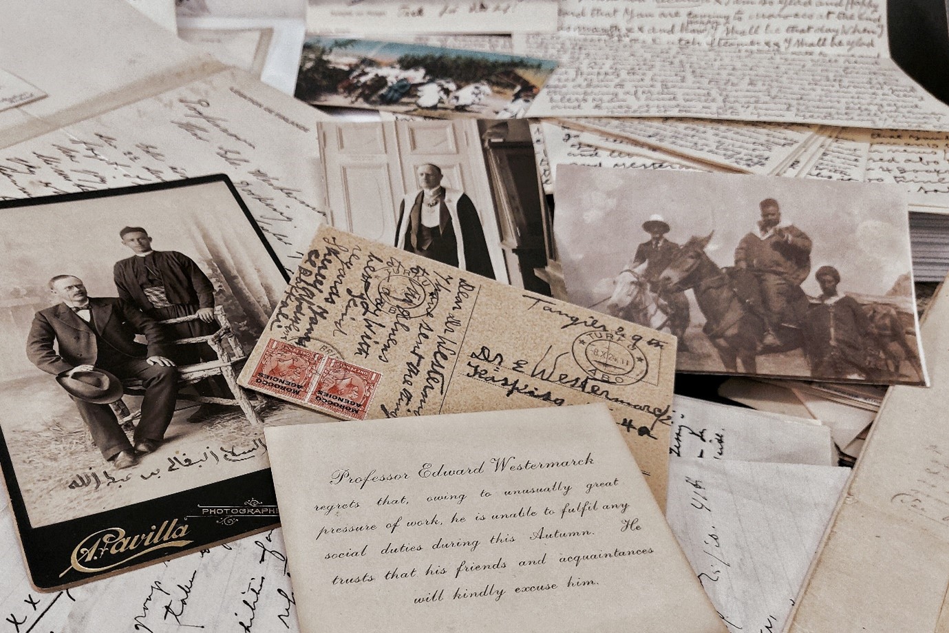 Westermarckin kokoelma sisältää kirjeitä, postikortteja, valokuvia, käsikirjoituksia ja muistiinpanoja. Kuva 1, kuva 2, kuva 3 , kuva 4. Valokuvaaja: Martin Ellfolk.