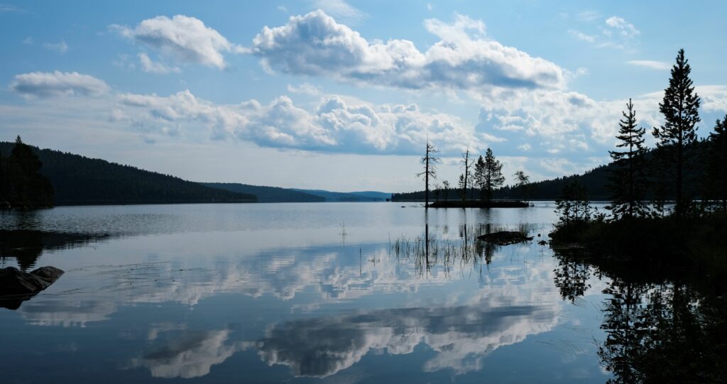 När jag för första gången besöker Enare träsk, sommaren 2024, är det 28 grader varmt. På kvällsdoppet får jag sällskap av en ren, som också söker sig till svalka. När jag simmat runt en udde kan jag tydligt se Äijih, som jag vet ligger på 11 kilometers avstånd. Bara öns märkliga konturer gör att man känner vördnad. Långt bakom Äijih fortsätter ännu sjön och dess storlek inger respekt – detta är verkligen ett hav. Samernas hav.