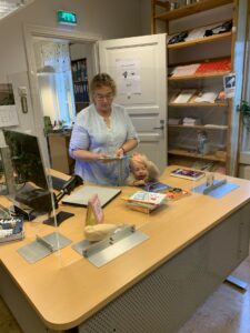 Men hur hamnade hon här? Efter 20 år på sjukhuset, med olika titlar – allt från sjukhusbiträde, arkivbiträde och läkarsekreterare – gick Ölund en kurs i bibliotekskunskap 2002. Och efter den var hon fast i biblioteksarbetet. Hon fick jobb på biblioteket i Jomala, där hon jobbade i 10 år, innan hon tack vare sin dåvarande chef Gunilla Jansson, fick möjlighet att delta på en bibliotekssekreterarkurs på läroavtal vid Borgå folkakademi.