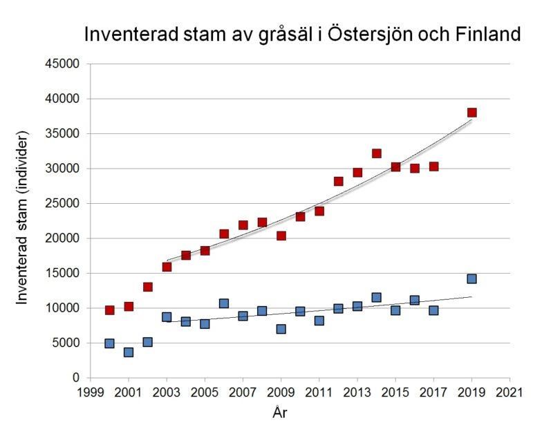 Från början av 2000-talet har Östersjöns gråsälsstam vuxit med i genomsnitt fem procent per år. Vid flyginventeringar år 2019 noterades cirka 38 000 gråsälar i Östersjön. Av dessa befann sig cirka 14 200 i Finlands havsområde, där Naturresursinstitutet Luke ansvarar för inventeringen. Man räknar med att det faktiska antalet sälar är aningen högre, eftersom alla inte påträffats vid inventeringen.