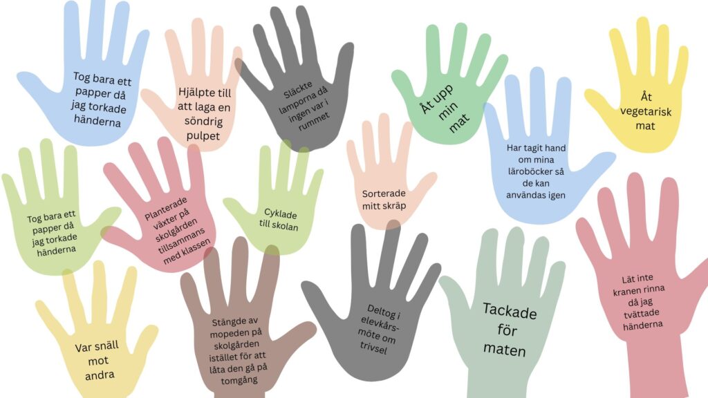 Några exempel på saker eleverna gjort för att klassen och skolan ska vara mer hållbar.
