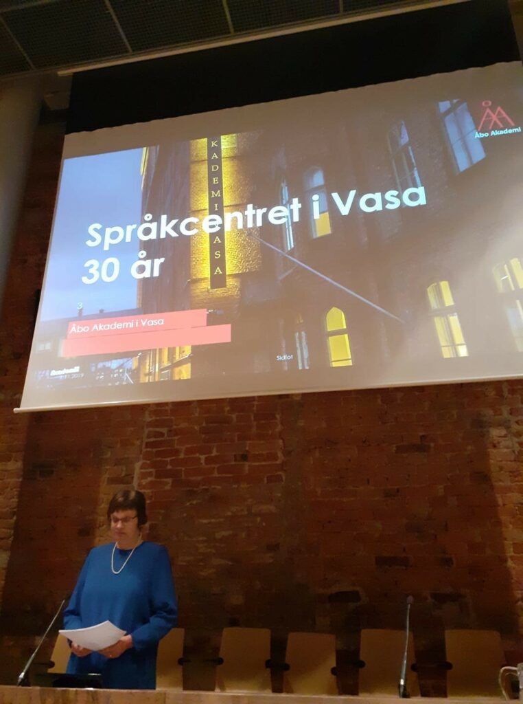 Tendenser i språket och språklig kompetens i arbetslivet var två ämnen som diskuterades under seminariet Språkcentret i tiden, som hölls i november för att fira att Språkcentret verkat i 30 år vid Åbo Akademi i Vasa. Språkcentret träffar alla studerande vid universitetet under deras studietid. Det är en förmån och en utmaning att ge dem de språkkunskaper som vår lagstiftning kräver. Språkcentrets förhoppning är att universitetsvärldens finansiärer ska förstå vikten av mångsidiga språkkunskaper vid de finländska universiteten också i framtiden.