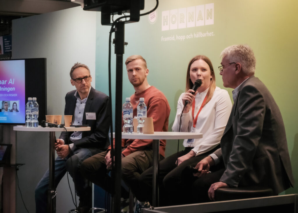 Sofia Jusslin, universitetslektor inom svenska och litteratur med didaktisk inriktning, deltog i en diskussion kring hållbar AI i utbildningen. I diskussionen lyftes särskilt den etiska aspekten fram, risker och även möjligheter i utbildningen.