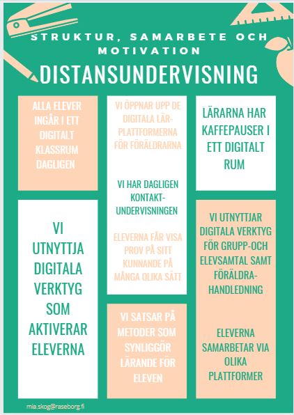 Den frågan ställde utbildningsplanerare Mia Skog på sin Facebookvägg den 17 mars 2020. Som bild bifogade hon en poster som hon själv gjort, där orden struktur, samarbete och motivation stod i fokus. Det var där det började – en hel serie av inspelade intervjuer med tips, råd och olika aspekter på distansundervisning. En slags lärarfortbildning på distans.