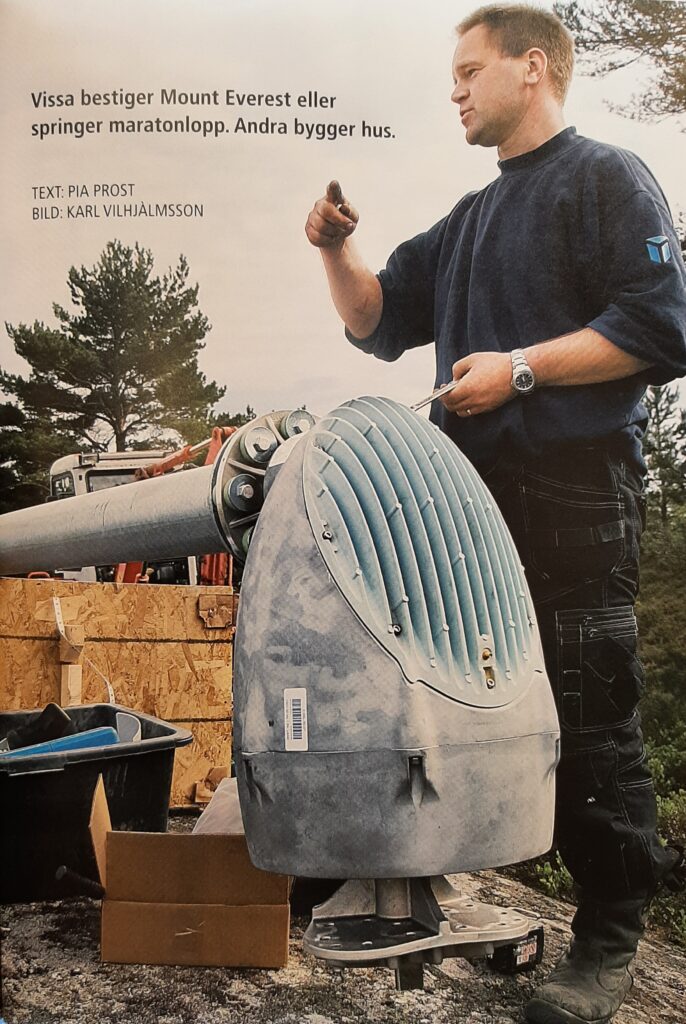 – Jag bestämde mig för att bygga i sten, för att få ett hus som på bästa sätt skulle kunna stå emot vädrets makter. Men sten innebär verkligt tunga transporter, konstaterar Johan. Jag började därför med att bygga ett båthus som skulle rymma stora båtar. Men det står ännu inte klart, eftersom vi hade turen att få en förbindelsebåtsbrygga till ön. Sjöfartsverket hade pengar för en brygga som egentligen skulle byggas på Nötö, men när det blev oklarheter kring bryggans placering blev förbindelsebryggan på mycket kort varsel byggd här på Bockholm istället. Eftersom vi också byggt en stabil väg fram till huset kan en långtradare komma iland på bryggan, koppla loss släpet och dragbilen har kunnat köra fram bland annat betongelement och tegelpallar till tomten. Till dags dato består huset av cirka 400 ton stenmaterial; må det storma!
