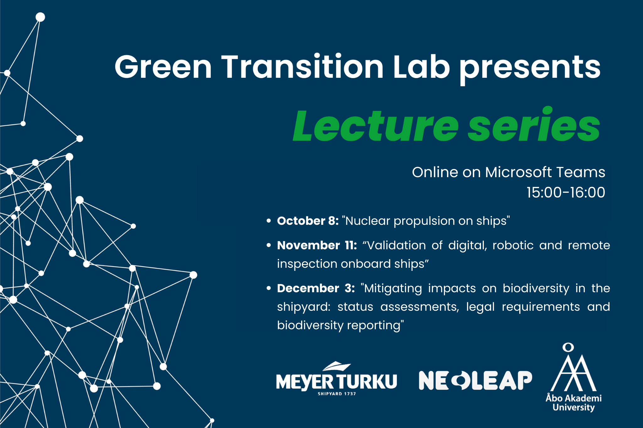 The lecture series hosted by the GT Lab returns this autumn, offering insightful discussions on sustainability, innovation, and the green transition. The series brings together experts from academia and industry to share knowledge and ideas on shaping a more sustainable future in the maritime industry.
