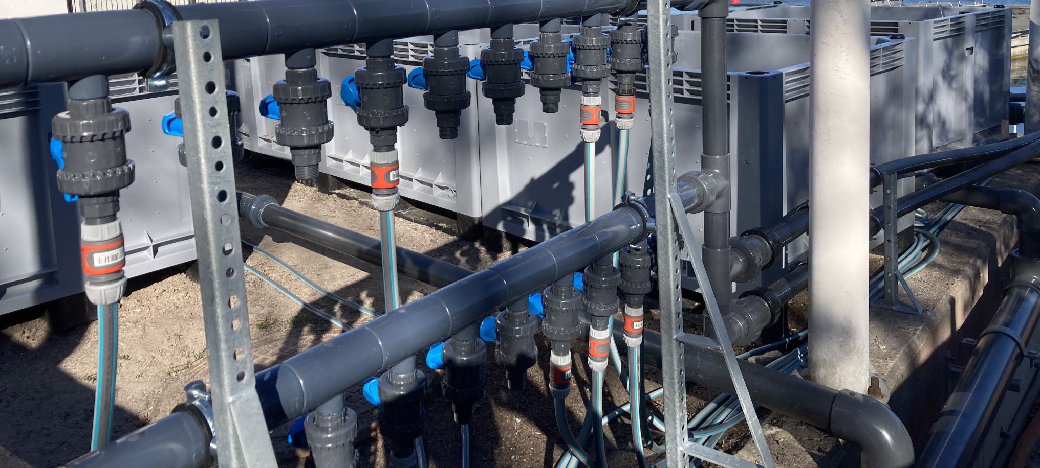 Circulation pumps (EHEIM 56.7 L/m / Tunze TURBELE STREAM 6085) provide water currents and equally, distribute heat inside the mesocosms.