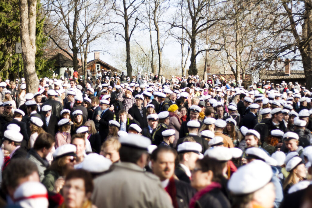 Valborgsmässoafton or Vappen (in Swedish), Midsummer and New Year’s Ever are examples of holidays that are widely celebrated in Finland. Vappen takes place on 30th April and is one of the biggest holidays. Typically, the celebrations include picnics and the consumption of mjöd (mead), sparkling wine, doughnuts, and many high school alumni their student caps. In Turku, Swedish-speaking Finns traditionally gather to celebrate the start of Vappen in Vartiovuori Park.