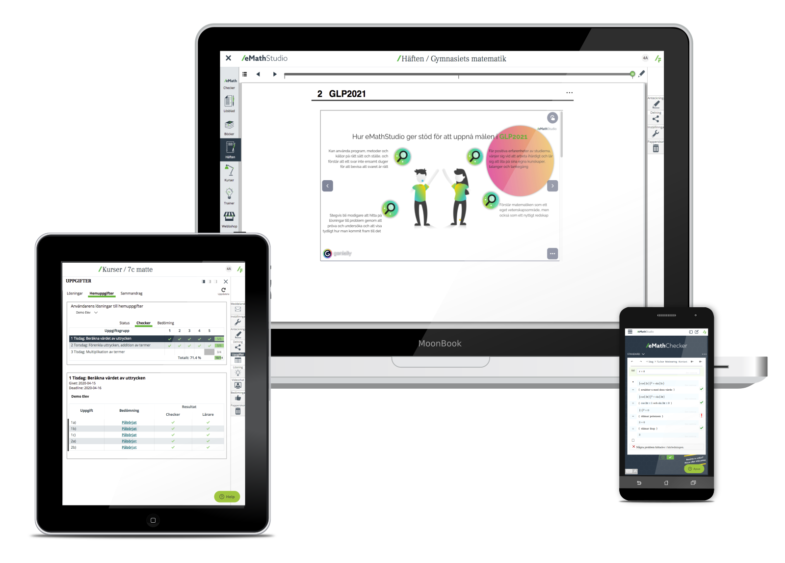 eMathStudio fungerar på såväl desktop, läsplatta som mobil.