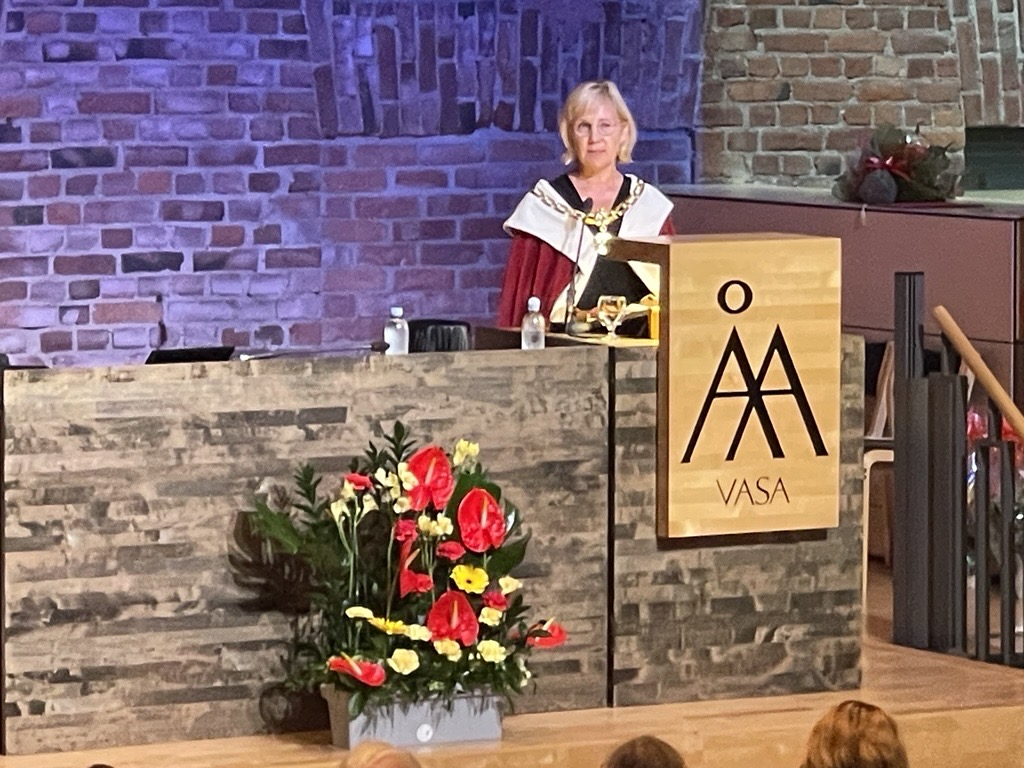 Hon uppmärksammade också de organisationsförändringar som genomförts vid Åbo Akademi under våren, vilket lett till en enklare struktur med färre enheter, och uttryckte sin uppskattning för det stora arbete som lagts ned på att genomföra förändringarna.