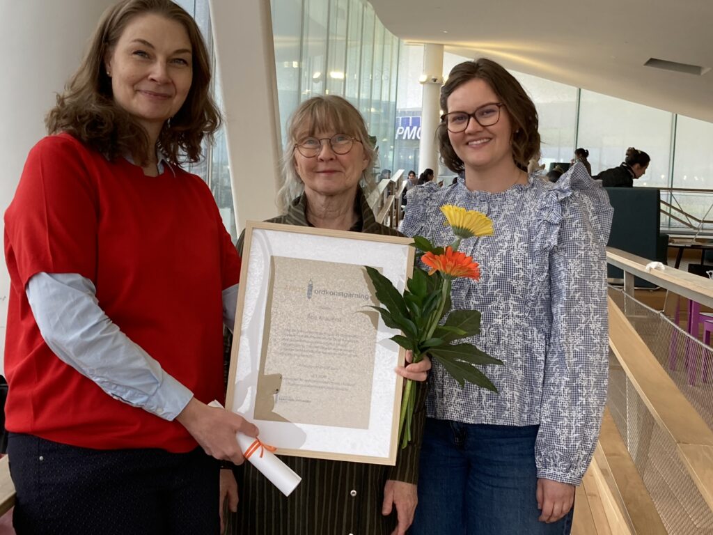Priset mottogs i centralbiblioteket Ode i Helsingfors av Ria Heilä-Ylikallio, professor i svenska och litteratur med didaktisk inriktning och Sofie Lundell, doktorand i pedagogik.