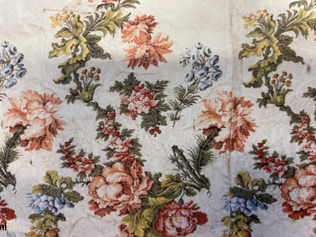 – Det här är min personliga favorit. Dräkten användes som bruddräkt av Eva Beata Stenberg Bladh då hon gifte sig år 1787. Eva Beata bodde i Vasa och på somrarna i Sundom. Troligtvis köpte hennes man Johan Peter Bladh tyget i Kina under en vistelse där. Dräkten kan sedan ha sytts i Vasa av en skräddare men mera sannolikt är det att den syddes av en skräddare i Stockholm då sömnadsarbetet är av väldigt hög kvalitet.
