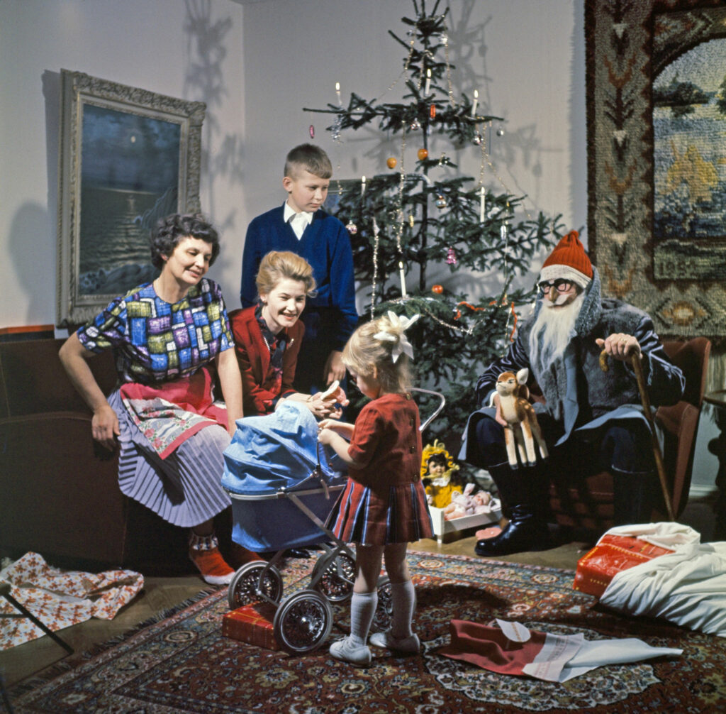 – Där, nånstans mellan rådarnas röda toppluva, Coca-Colas reklam från 1931 med en fryntlig tomte i röd skrud, järnekens och lingonens röda bär, och andra inslag därtill, blev julen så småningom röd. Det var särskilt under efterkrigstiden som det röda slog igenom ordentligt, säger Marander-Eklund.