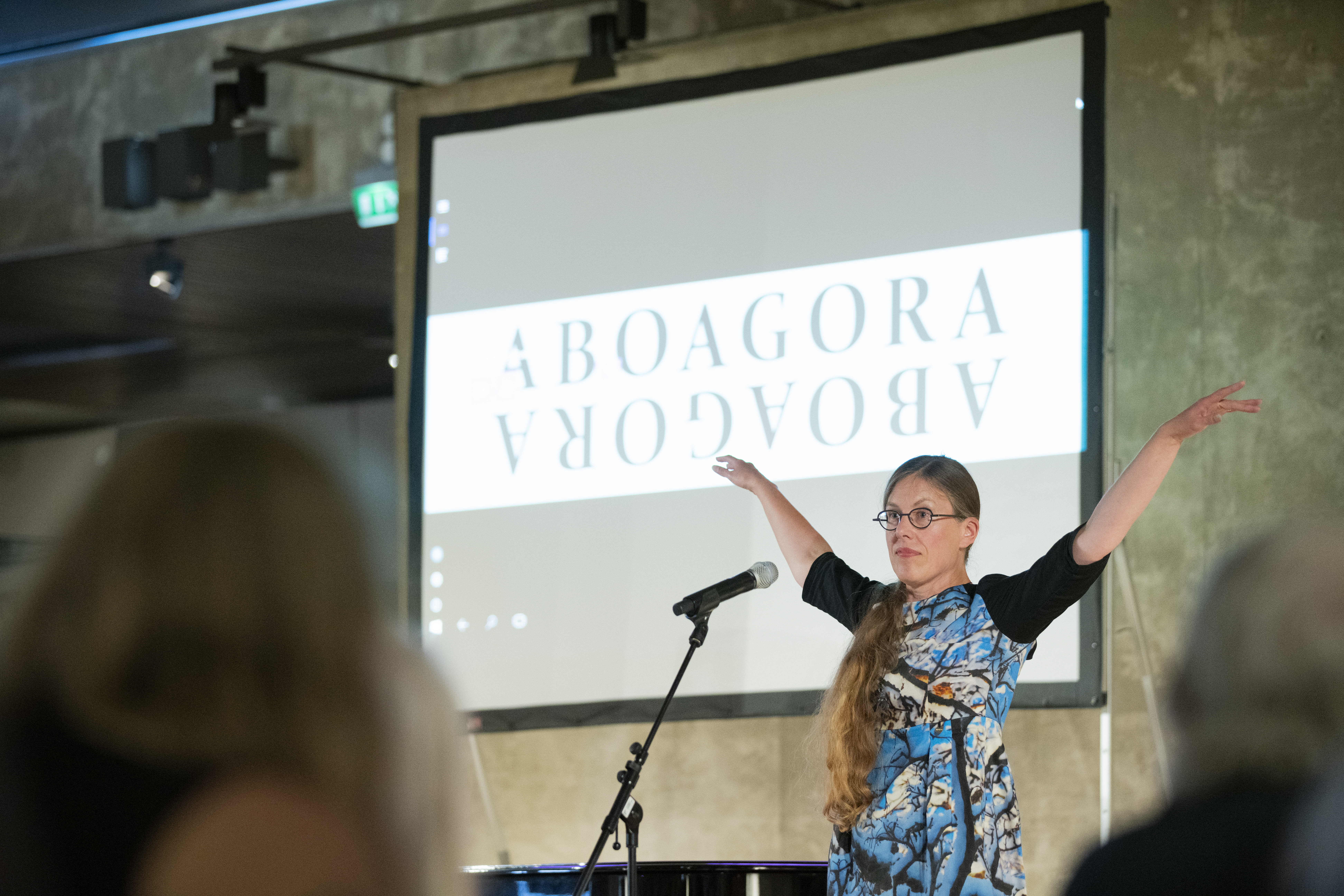 Forskaren, författaren och redaktören Mia Rönkä under ABOAGORA 2020. Foto: Pekko Vasantola.