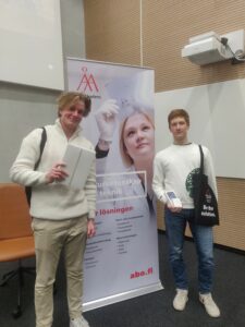 – Jag var lite orolig över tävlingsdelen på förhand, men den visade sig vara helt annorlunda än jag hade trott! Jag trodde vi skulle sitta och skriva prov i tre timmar, men det var mycket mer mångsidigt i och med presentationerna och labbandet, säger Olivia Munck från Gymnasiet Grankulla Samskola.