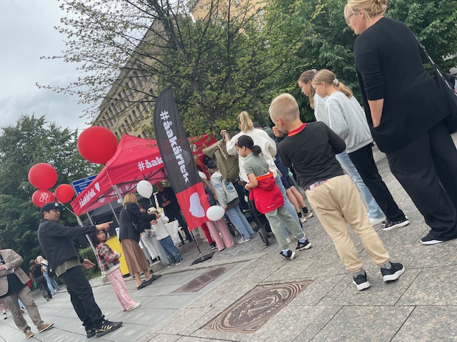 Åbo Akademi i Vasa deltog i Konstens natt (16.8.2024). Kön ringlade lång till 50-årsballongerna.