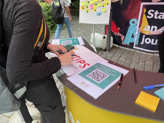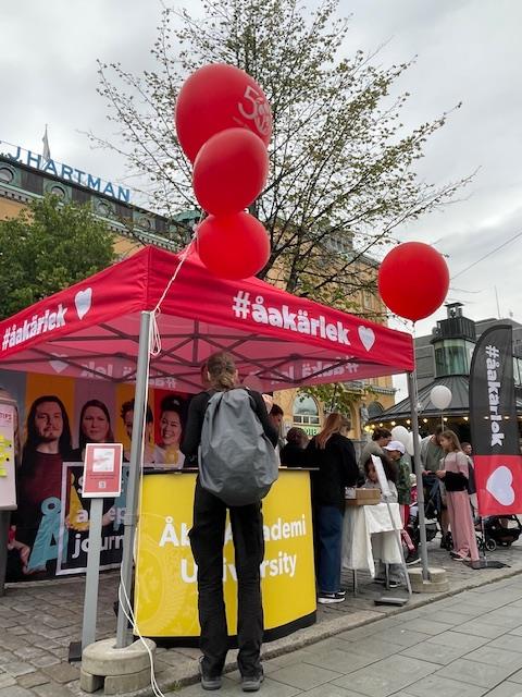 I vårt tält på gågatan kunde besökarna även bekanta sig med ”boken” ur olika synvinklar: besökarna fick skapa egna, unika bokmärken av föråldrad kurslitteratur, lämna och ta hem ett boktips samt beställa ett exemplar av historiken om Åbo Akademis första femtio år i Vasa.