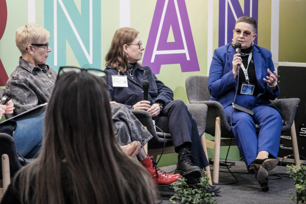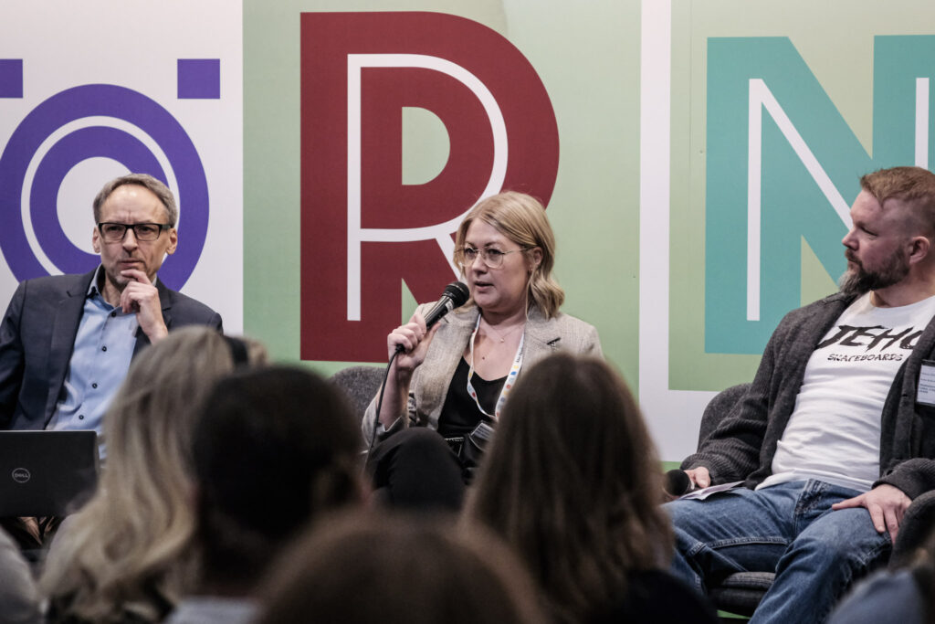 I Åbo Akademis monter kunde besökarna diskutera ämnesövergripande undervisning med Liselott Forsman, universitetslektor i flerspråkighetsdidaktik och Nina Mård, universitetslektor i pedagogik vid Åbo Akademi.