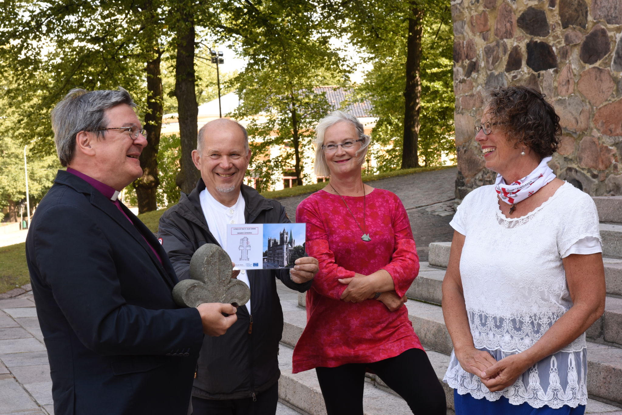 I överräckningen deltog också Nalle Öhman ordförande för föreningen Olofsleder i Finland rf – Suomen Olavinreitit ry och Nina Söderlund, projektkoordinator för projektet St Olav Waterway.