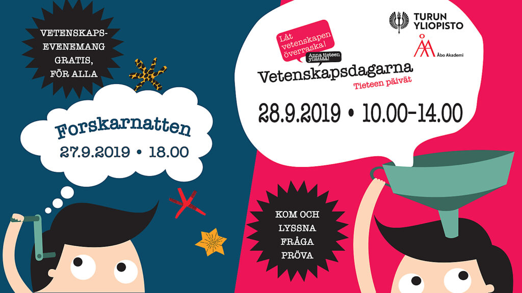 Sista veckoslutet i september ordnar Åbo Akademi och Åbo universitet vetenskapsevenemangen Vetenskapsdagarna och Forskarnatten. Vi inbjuder medierna till pressträff måndagen den 23.9 kl. 13.00 i besöks- och innovationscentret Joki (Lemminkäinengatan 12) för att höra mera om programmet.