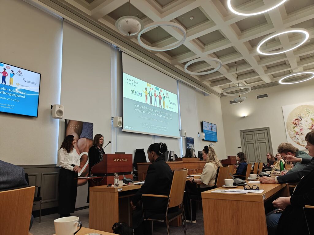 Under en tillställning i april (20.4.2026) presenterades de första resultaten. Deltagarna hade i sina smågrupper också formulerat frågor som de ställde stadsfullmäktiges ledamöter.