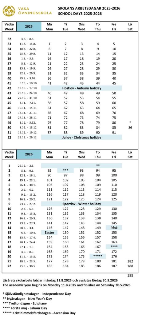 Läsårsinfo | School Year Information | Tietoa lukuvuodesta